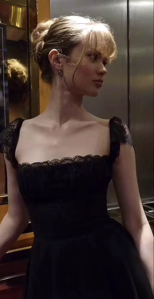 Black A Line Straps Cute Lace Short Homecoming Dress Outfits DP5130