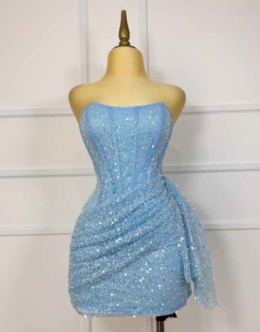 Gorgeous Pink Sequins Short Bodycon Dress Homecoming Dress DP562