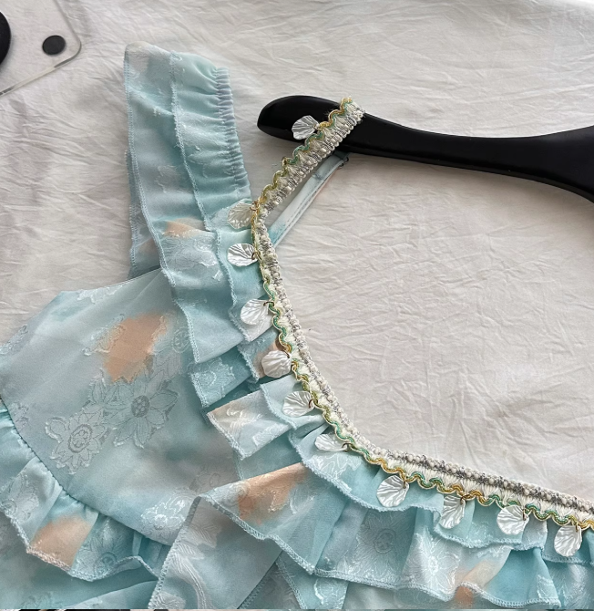 Blue A Line Spaghetti Strap Beaded Layered Chiffon Vacation Dress Homecoming Dress Outfits DP3547