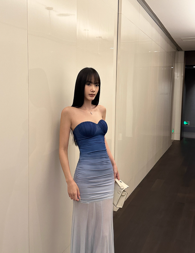 Blue Ombre Mermaid Strapless Pleated Tulle Prom Dress Formal Dress Evening Dress DP3455