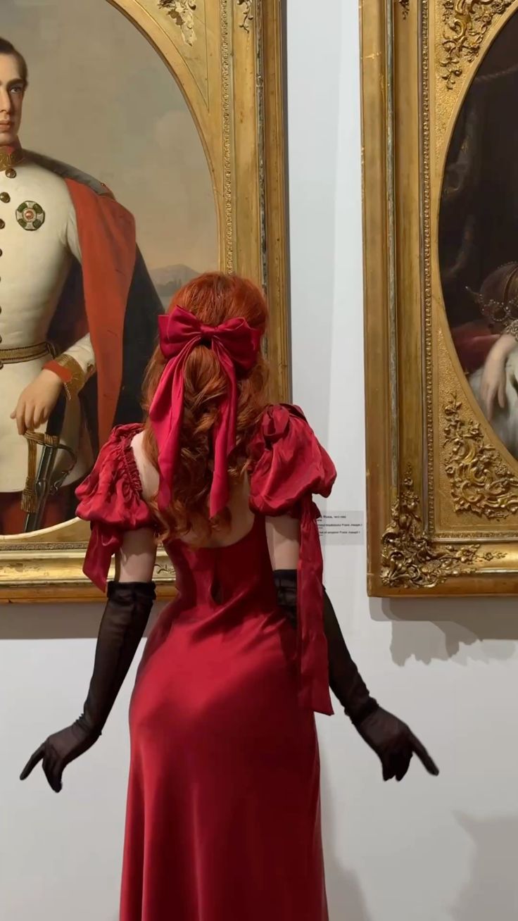 Burgundy A Line Puff V Neck Satin Long Prom Dress Date Dress DP4426