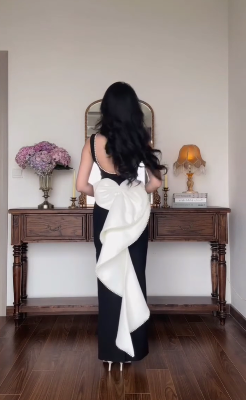 Classic Sheath Round Neck Satin Prom Dress with Bow DP4365