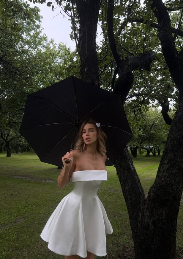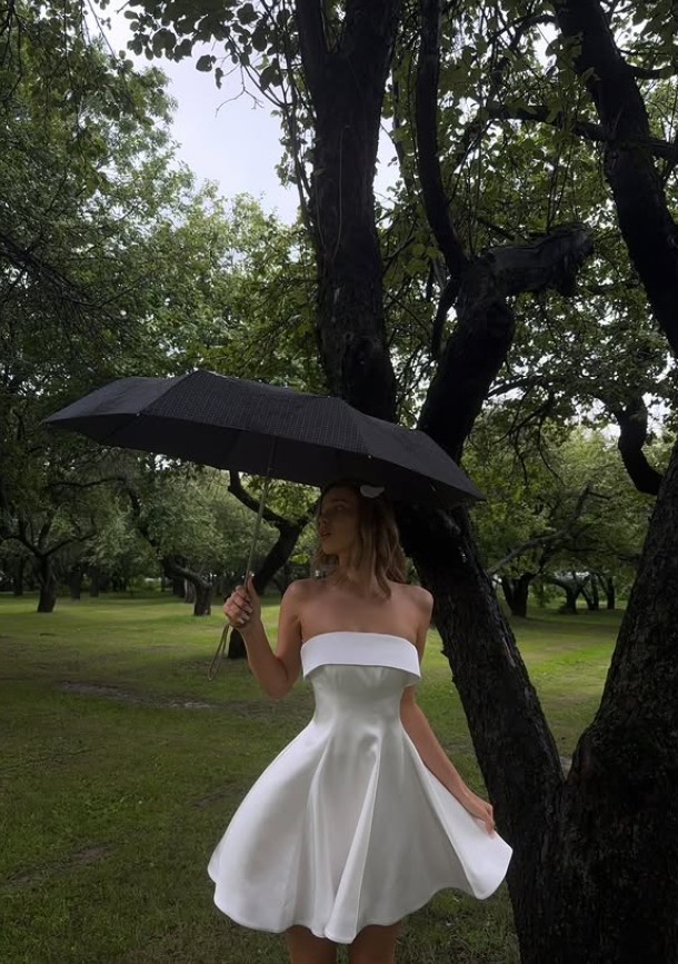 Cute A Line Strapless Satin Short Prom Dress Homecoming Dress Outfits DP4227