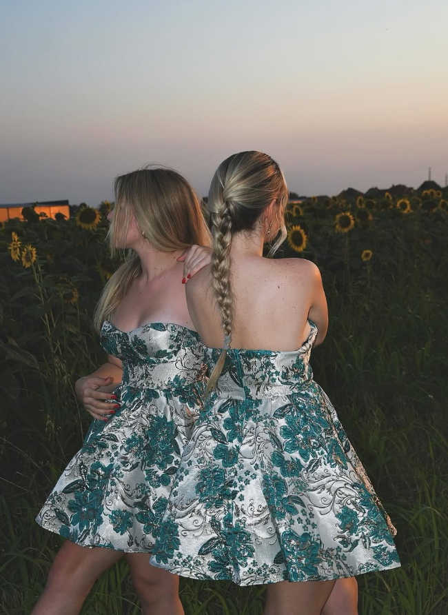 Cute A Line Sweetheart Neck Print Floral Satin Short Homecoming Dress Birthday Dress DP1495