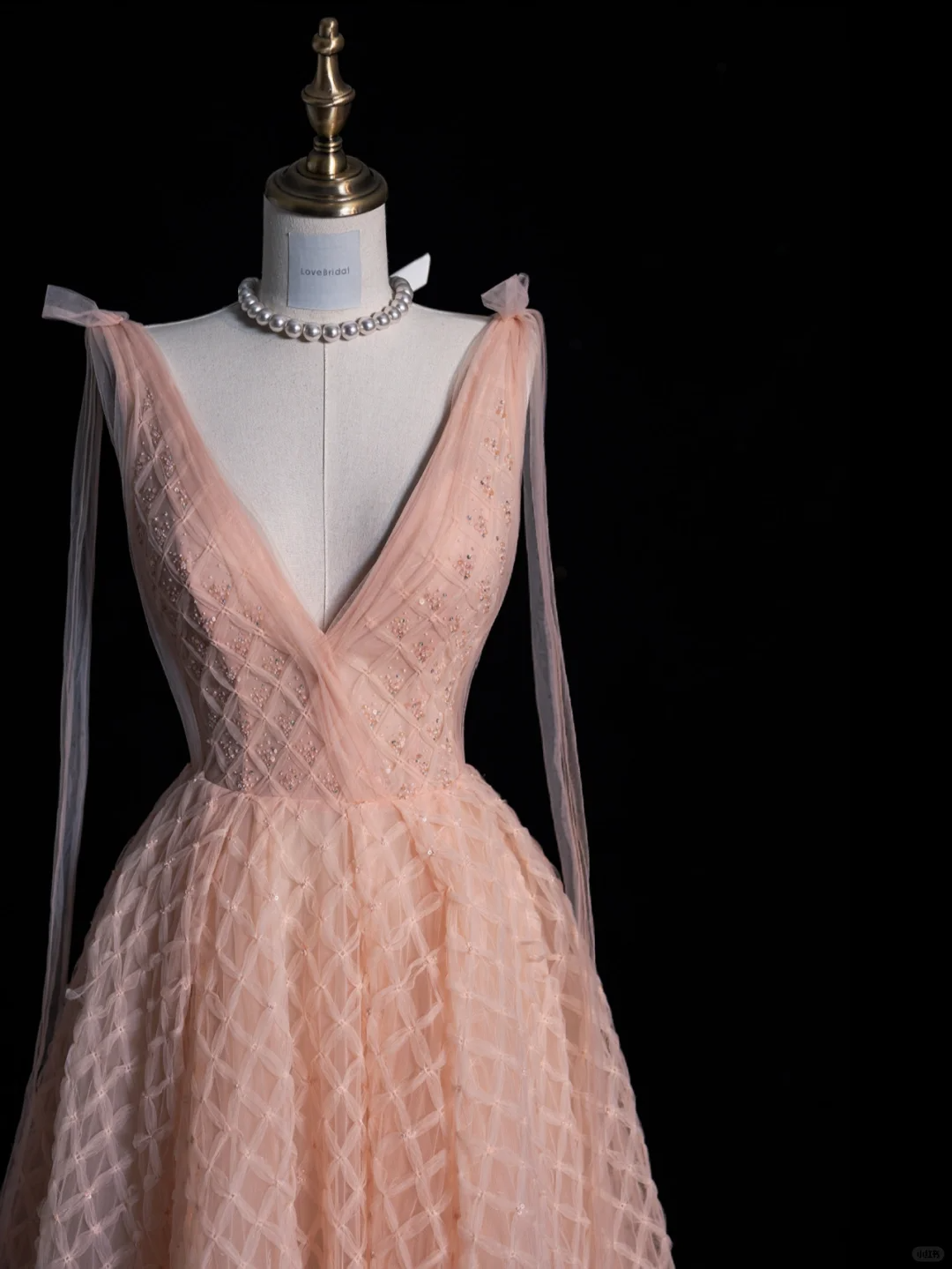 Cute A Line V Neck Tulle Long Prom Dress Graduation Prom Dress DP2264