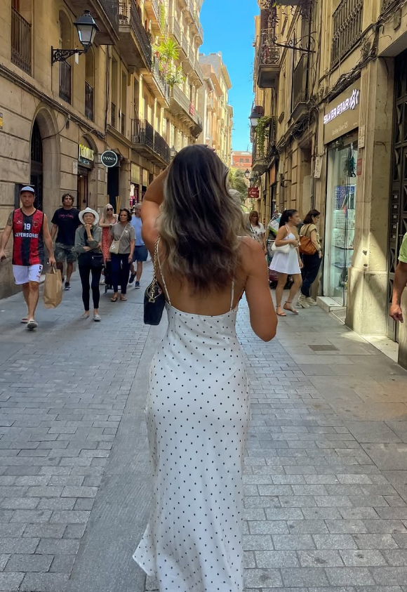 Elegant A Line Spaghetti Straps Polka Dots Lace Satin Long Prom Dress Evening Dress DP1321