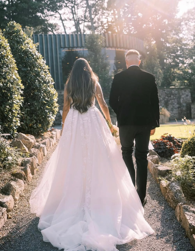 Elegant A Line Straps Embroidery White Tulle Ball Gown Wedding Dress DP1588
