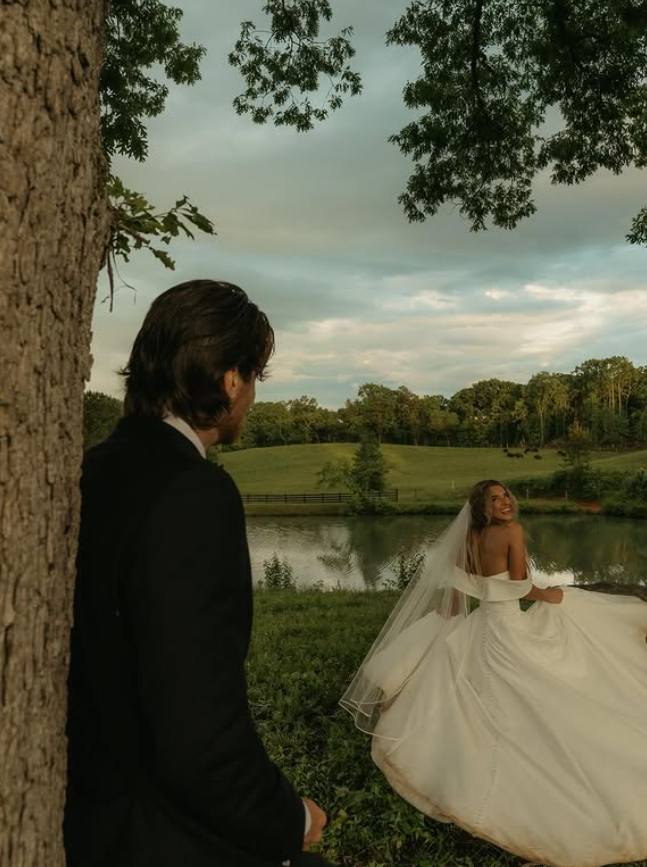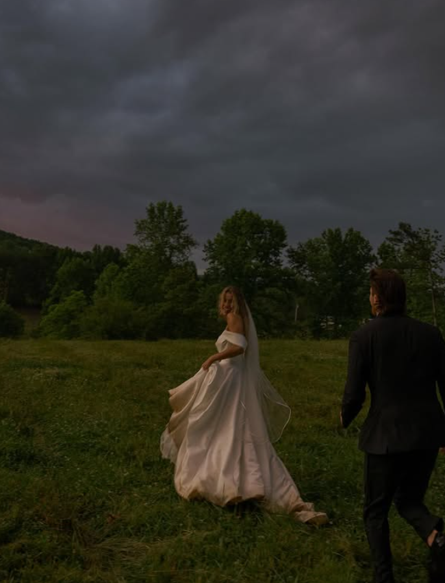 Elegant Ball Gown Off the Shoulder Pleated Simple Satin Wedding Dress DP4372