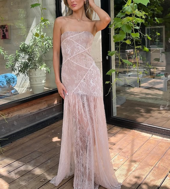 Elegant Mermaid Strapless Lace Long Prom Dress Evening Dress with Slit DP1476