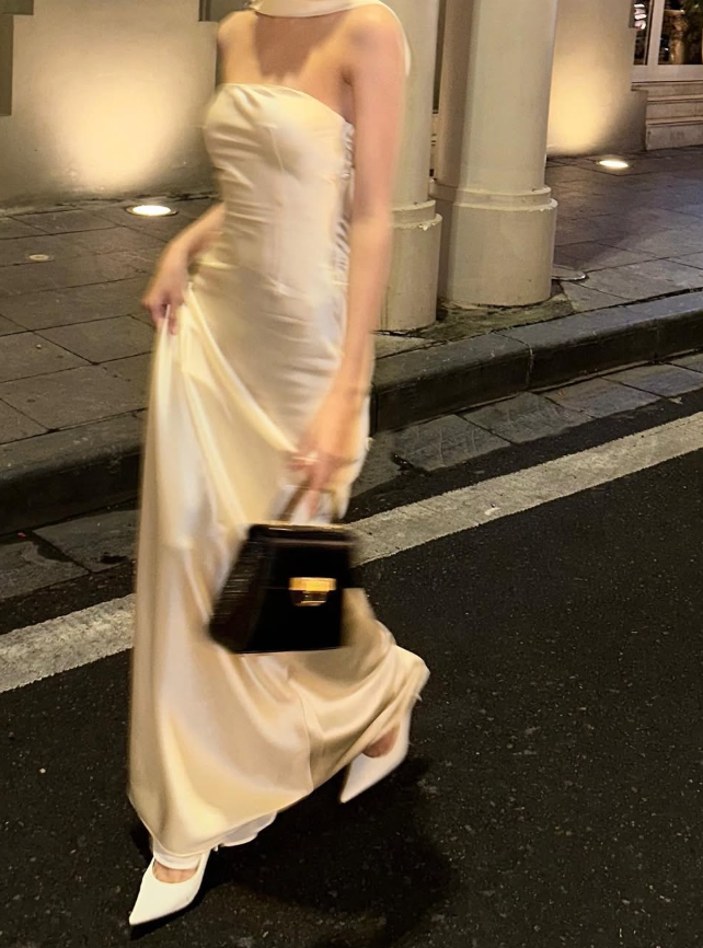 Elegant Sheath Strapless Ivory Satin Long Prom Dress Evening Dress DP4017