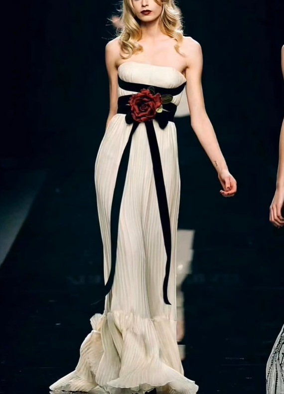Elegant Sheath Strapless Red Flower White Chiffon Prom Dress Graduation Prom Dress DP2150