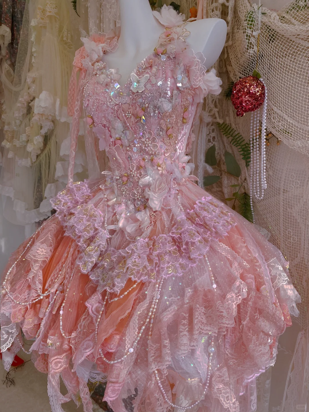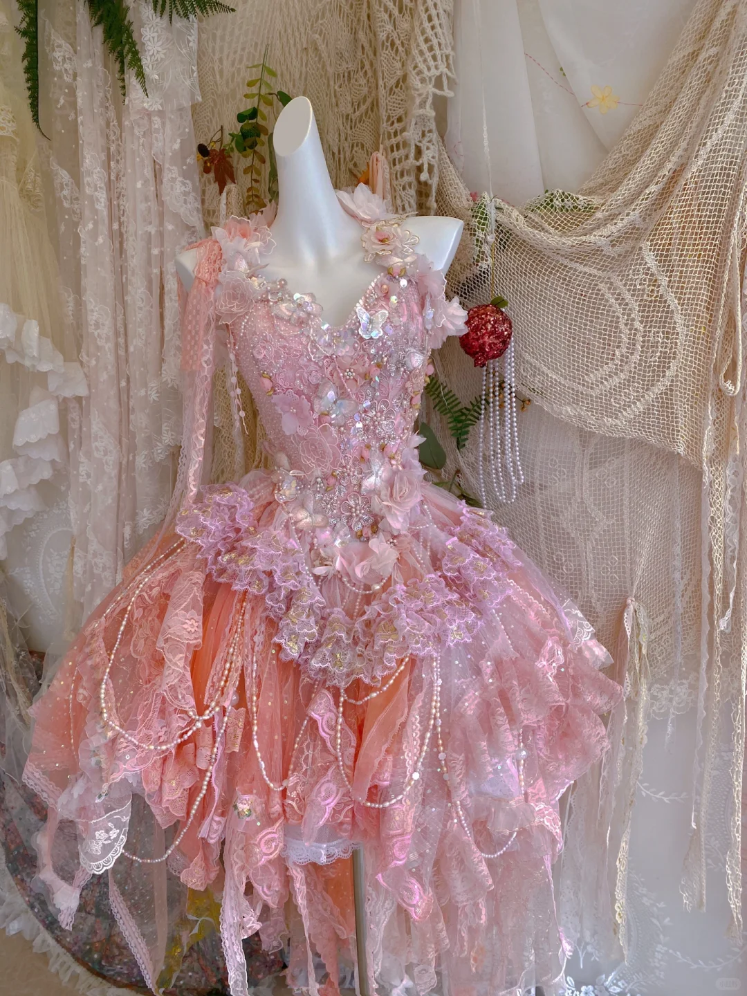 Exquisite Pretty Floral Sequin Lace Tulle Short Homecoming Dress Cocktail Dress DP2975