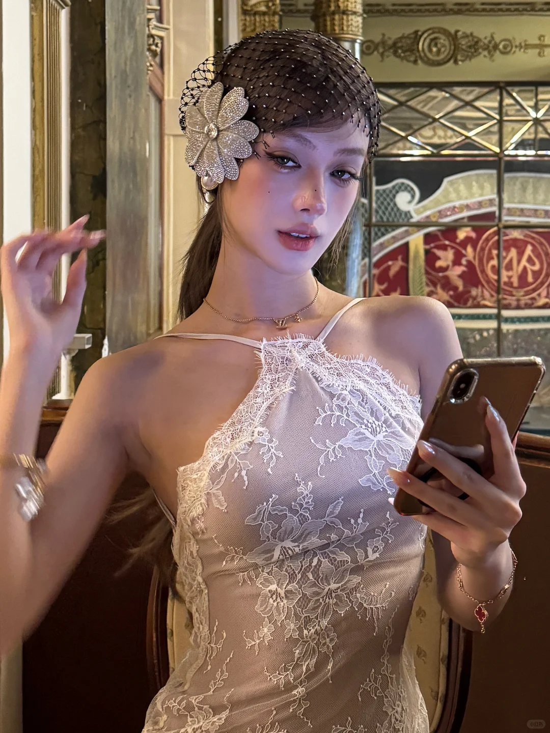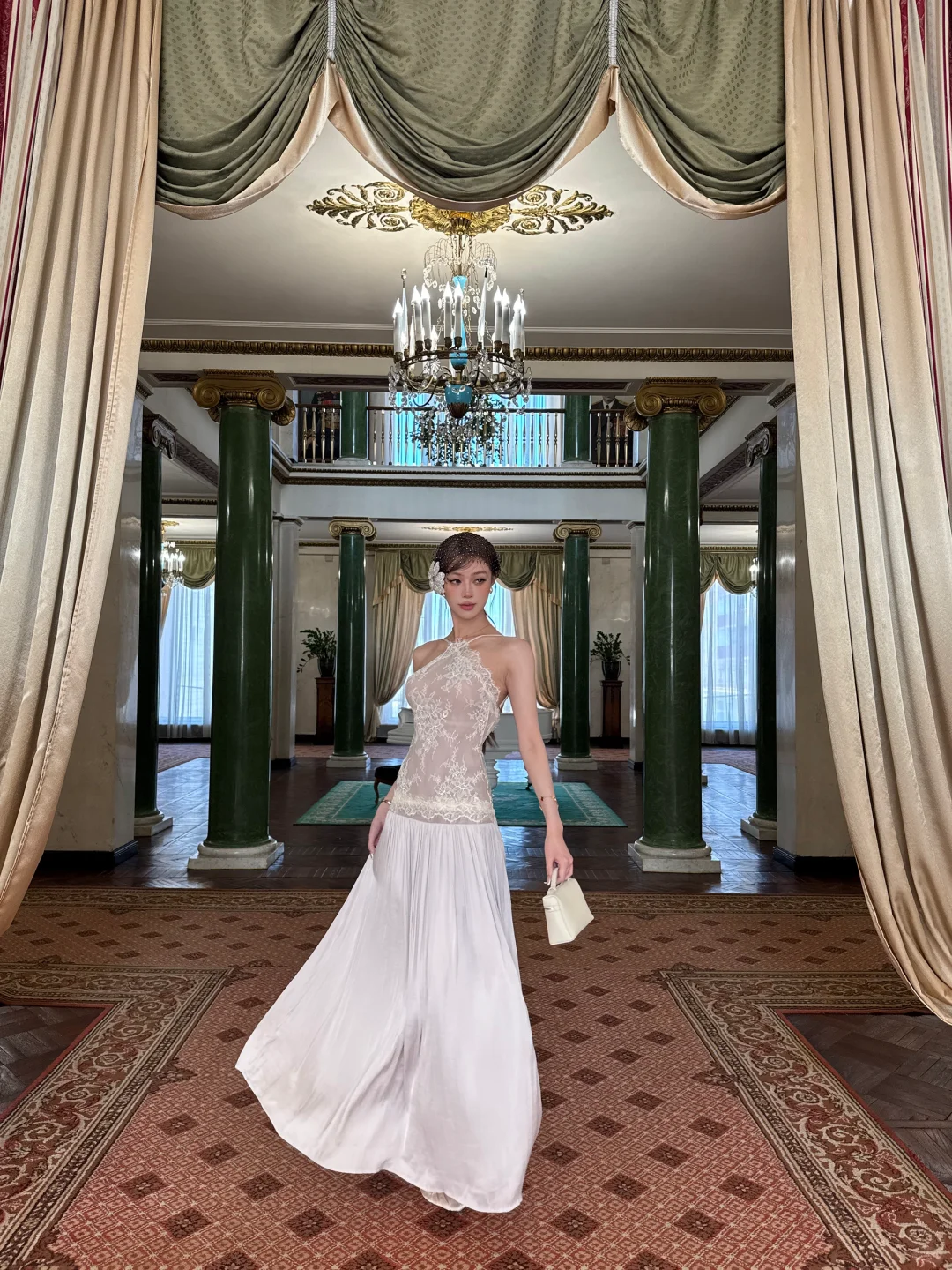 Gentle A Line Halter White Lace Satin Prom Dress Evening Dress DP4020