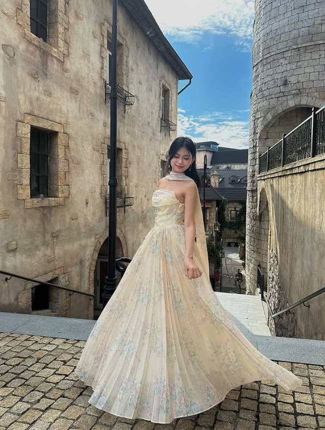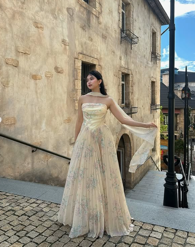 Gentle A Line Strapless Print Floral Chiffon Prom Dress 16th Birthday Dress DP3974