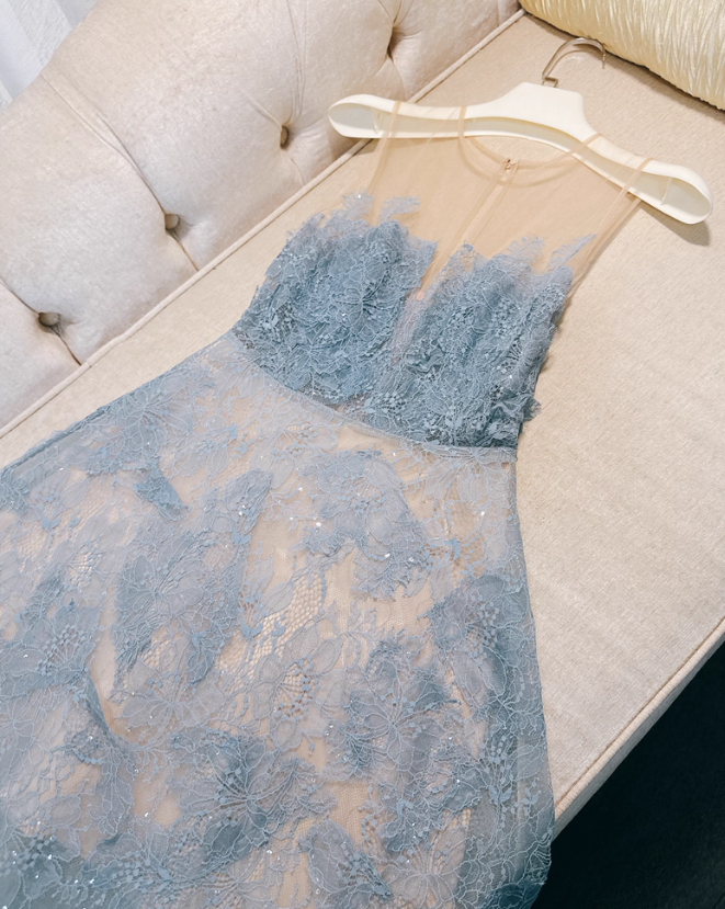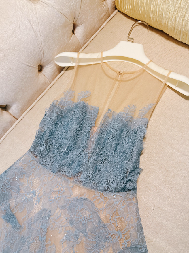 Gentle Blue A Line Strapless Lace Prom Dress Party Dress Date Dress DP4459