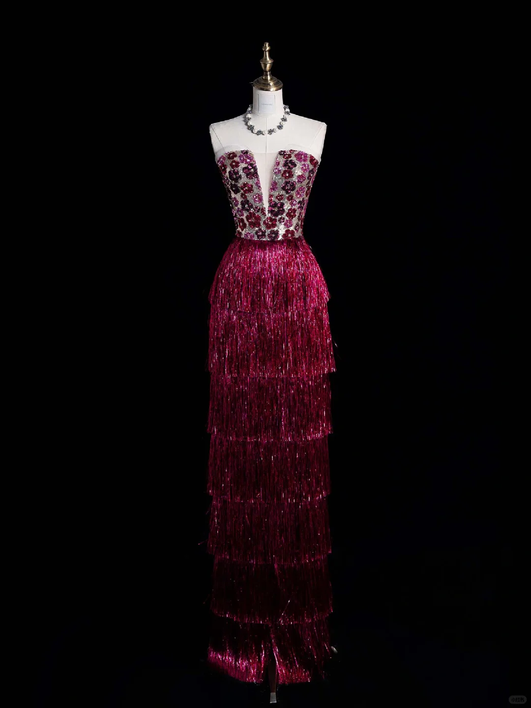 Gorgeous Sheath Strapless Floral Sequin Long Prom Dress Graduation Prom Dress DP2052