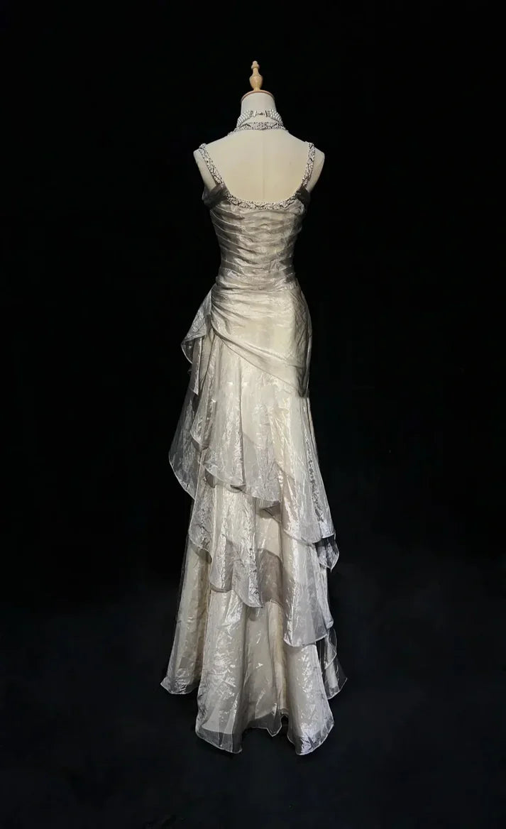 Green Mermaid Straps Layered Tulle Long Prom Dresses New Evening Gowns DP4214