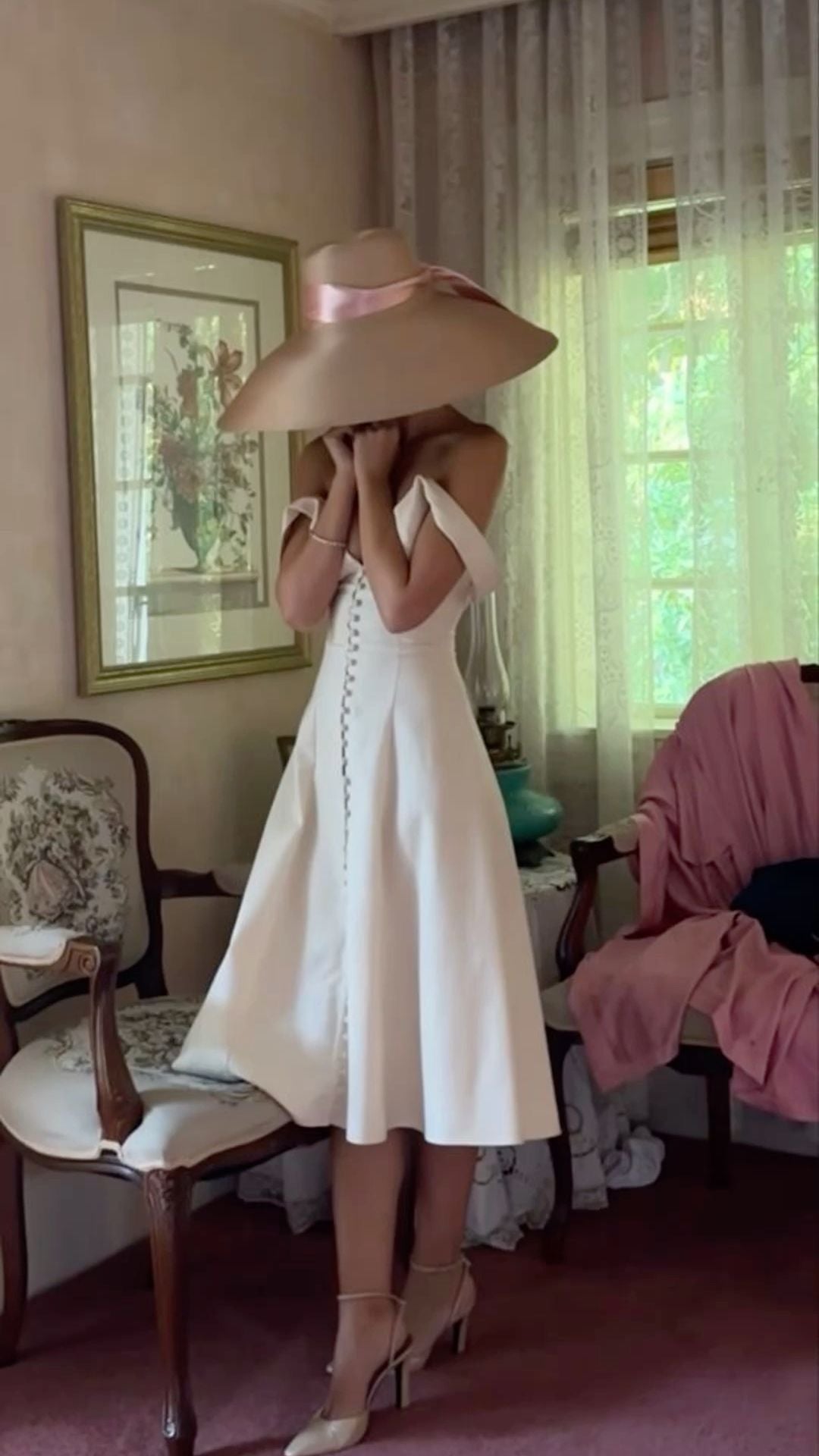 Ivory A Line V Neck Tea Length Homecoming Dress 16th Birthday Dress Outfits DP3667