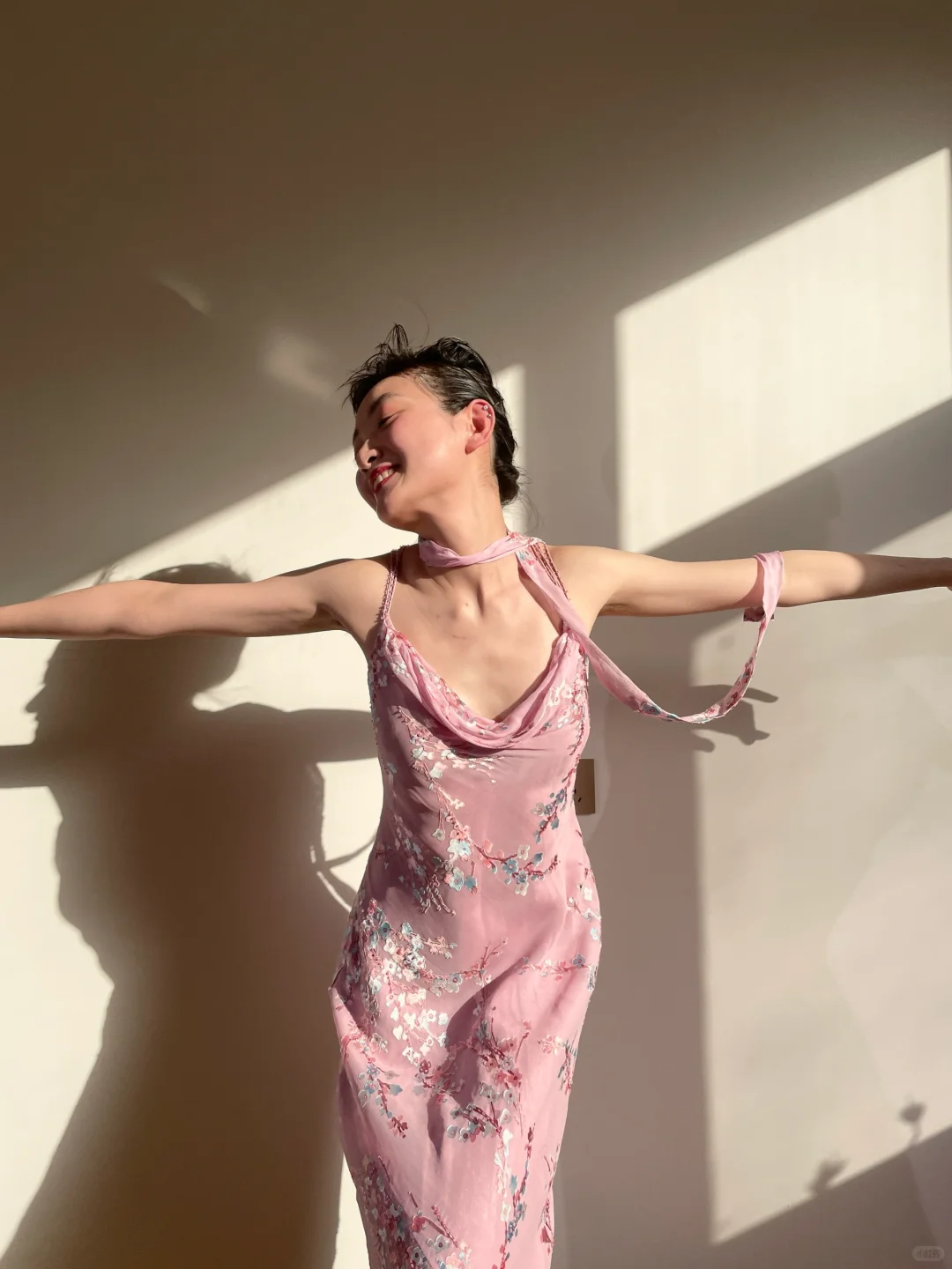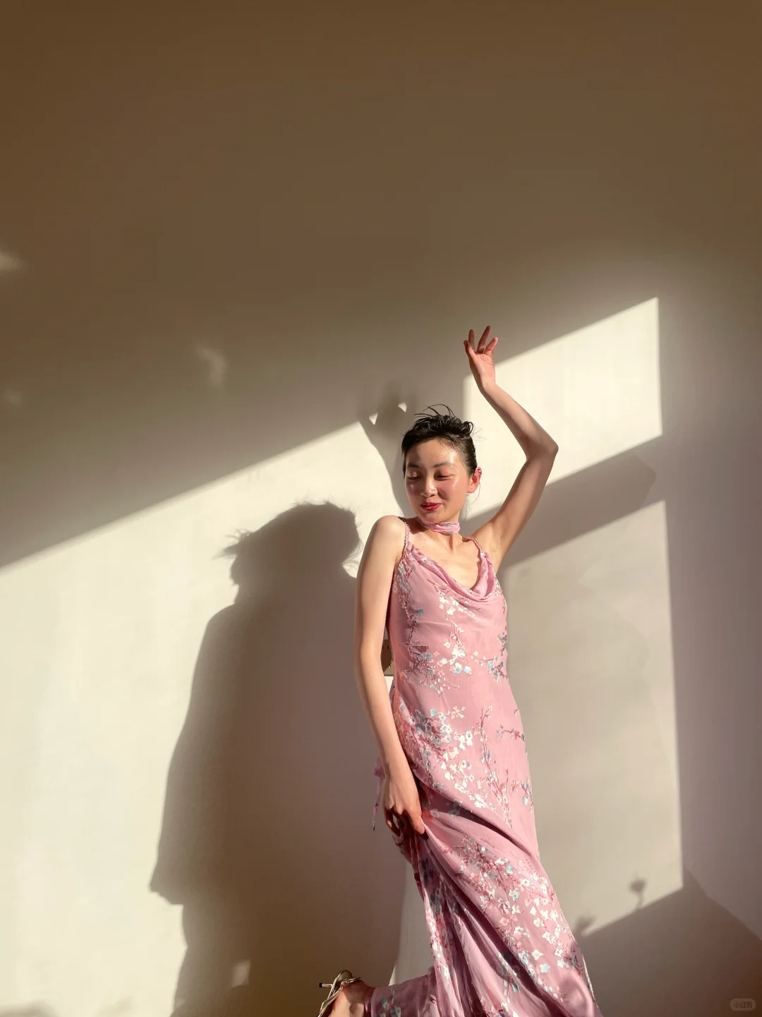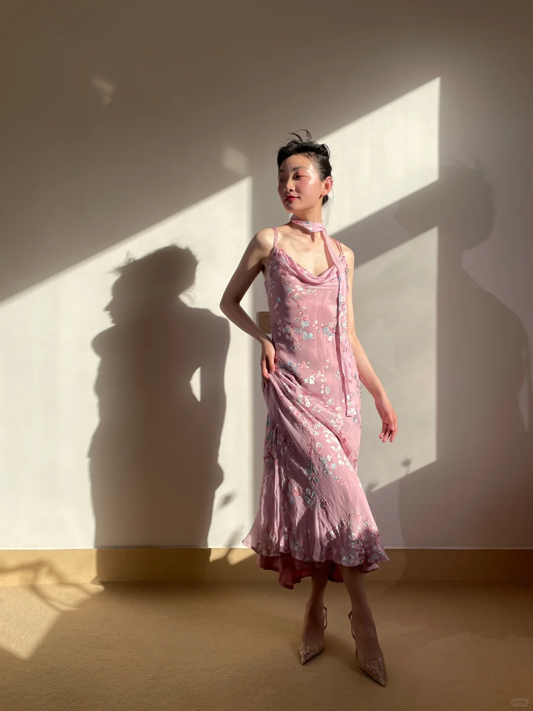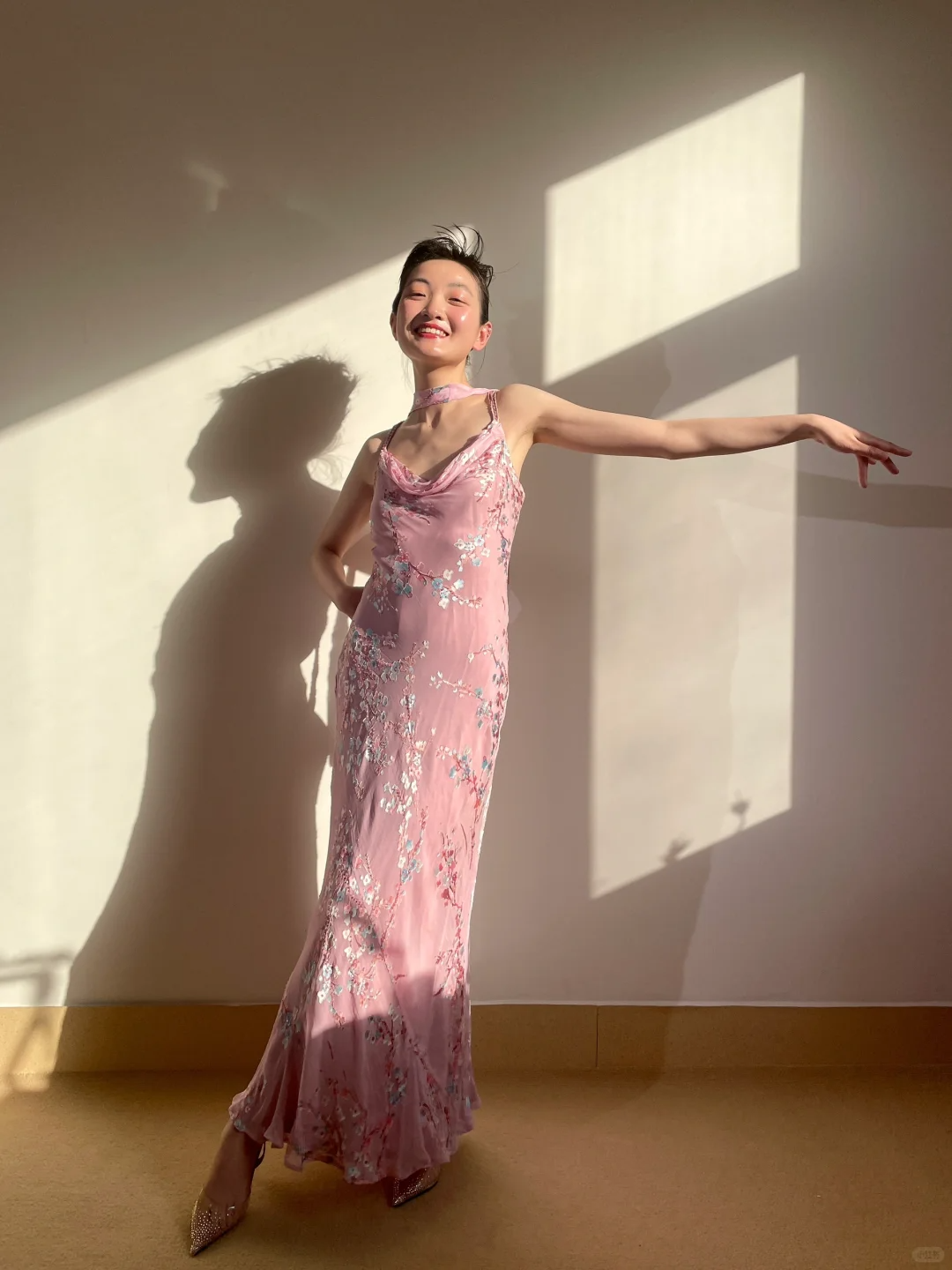 Vintage Gentle Mermaid Spaghetti Strap Print Floral Pink Chiffon Prom Dress Party Dress DP3709