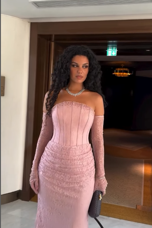 Pink Sheath Strapless Beaded Lace Prom Dress Wedding Guest Dress DP4342