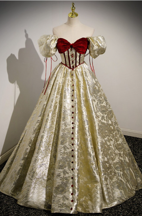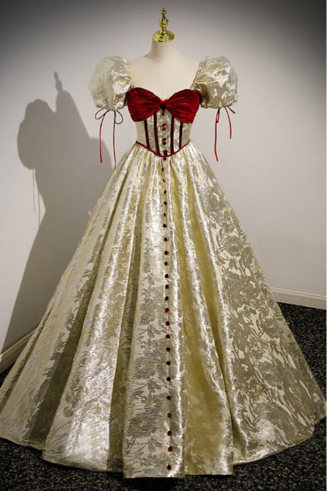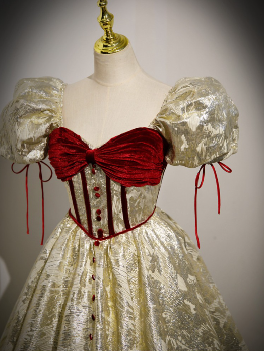 Retro Gold Prom Gown Dress With Short Bubble Sleeves DP638