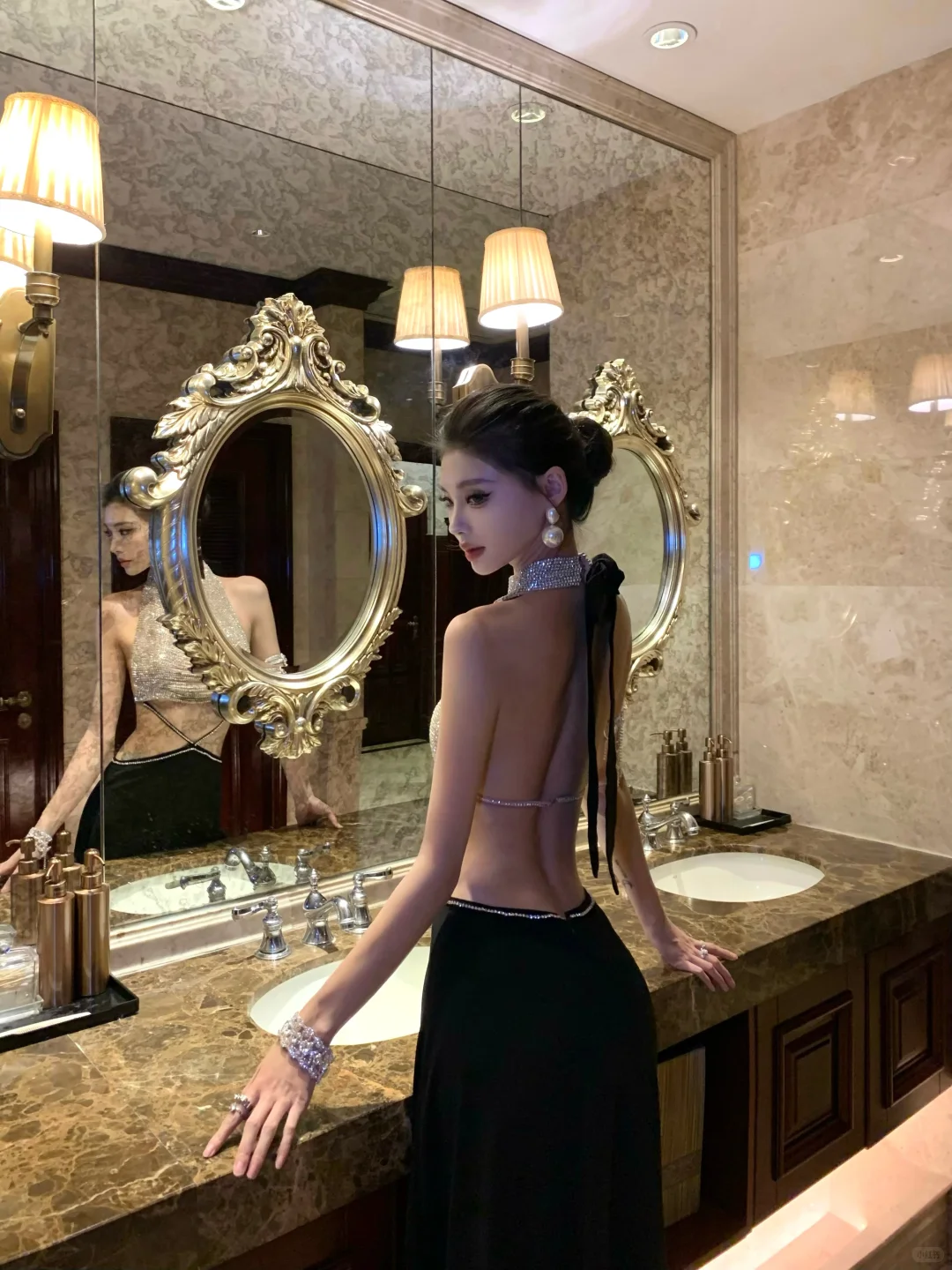 Sexy Mermaid Halter Sequin Beaded Satin Open Back Prom Dress Party Dress DP4552