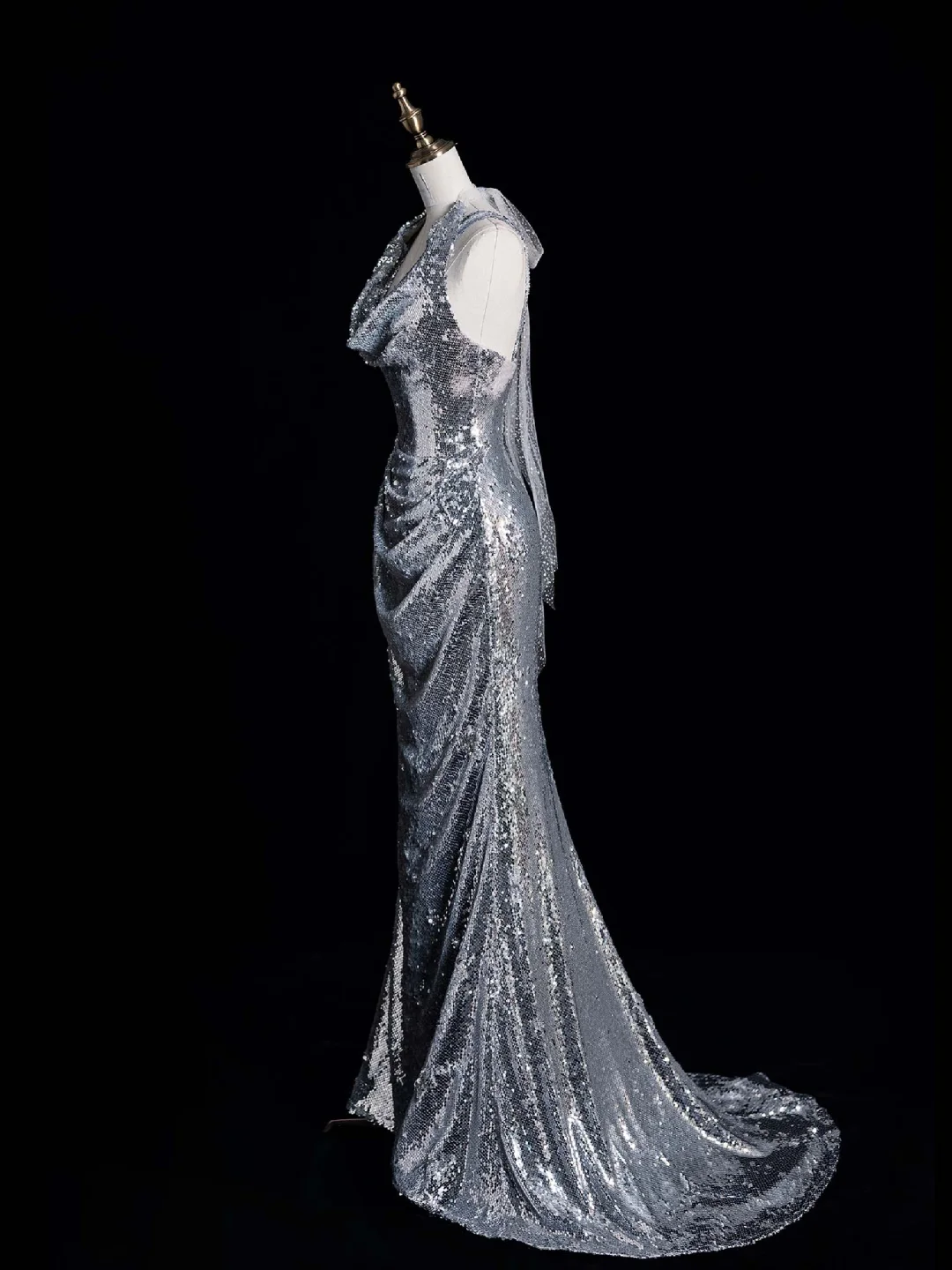 Sexy Sheath Halter Silver Sequin Long Open Back Prom Dress Graduation Prom Dress DP2014