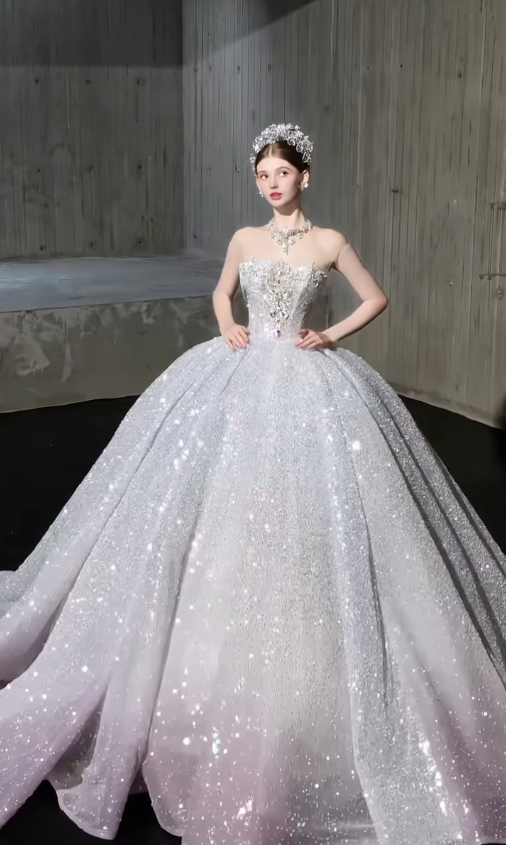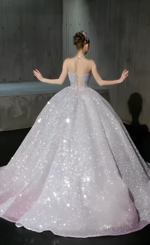 Shiny Ball Gown Strapless Exquisite Beaded Pink Ombre Sequin Prom Dress DP4386