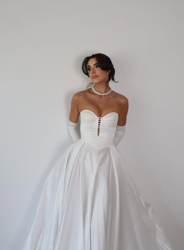 Simple Ball Gown Sweetheart Neck White Satin Prom Dress Wedding Dress DP3693