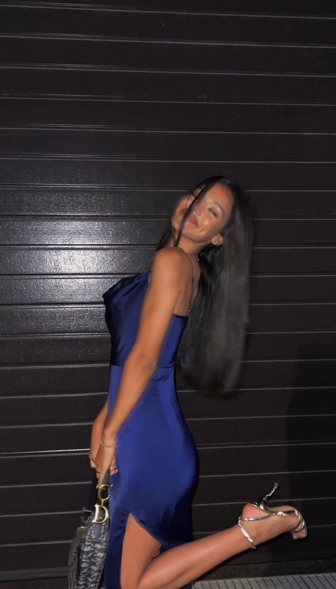 Simple Sheath Spaghetti Strap Navy Blue Satin Prom Dress Evening Dress with Slit DP3464
