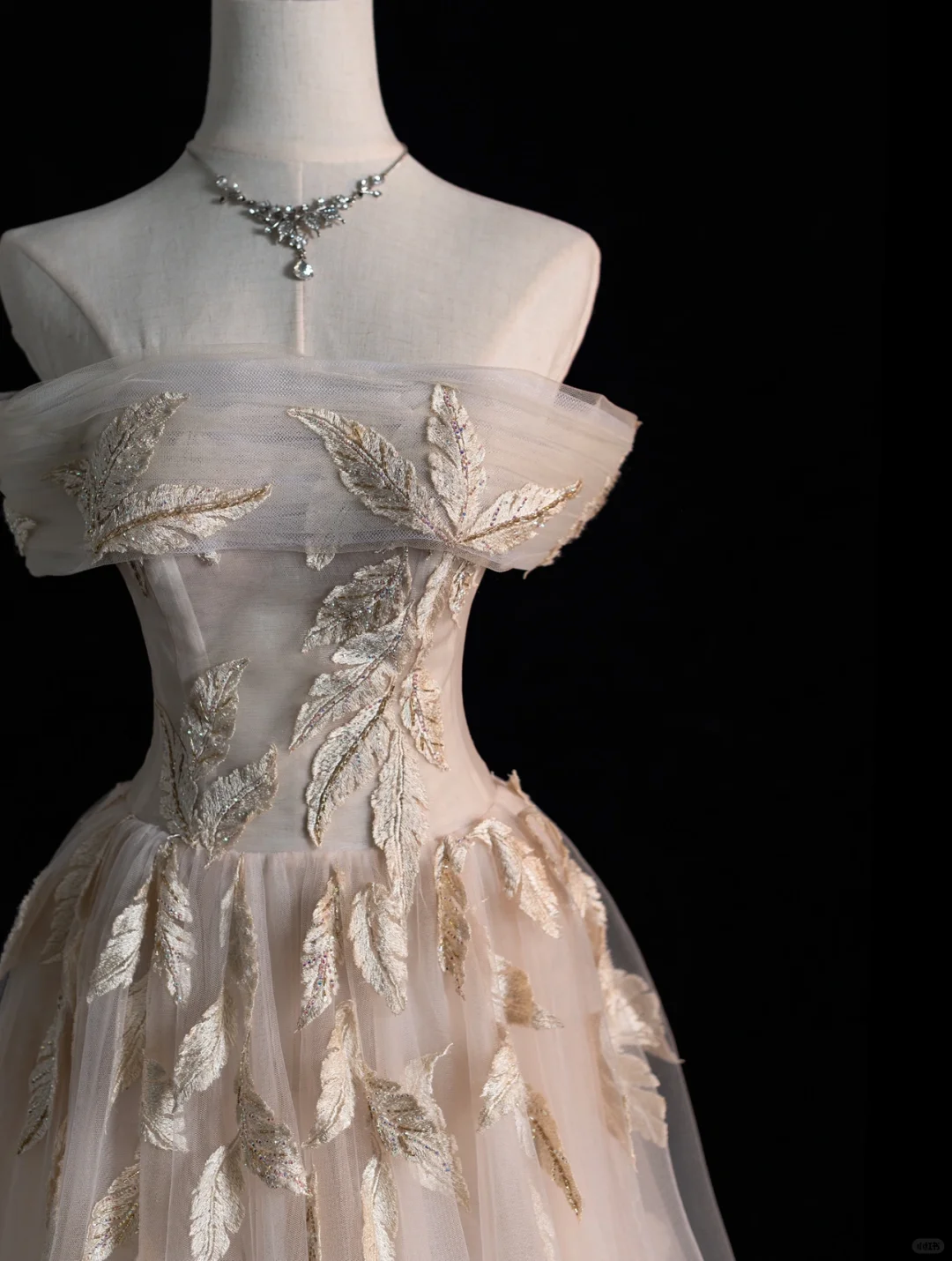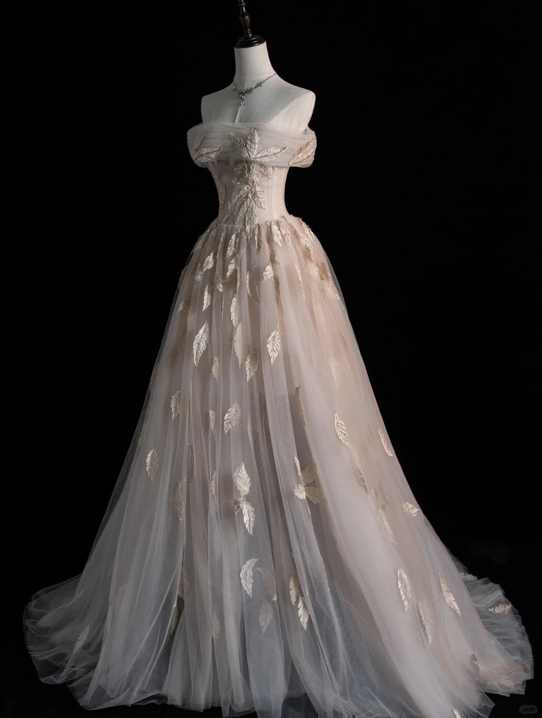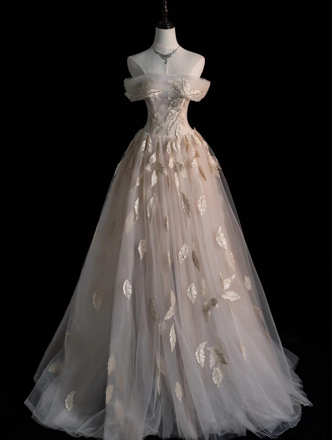 Stunning A Line Off the Shoulder Appliques Tulle Long Prom Dress Party Dress DP2520