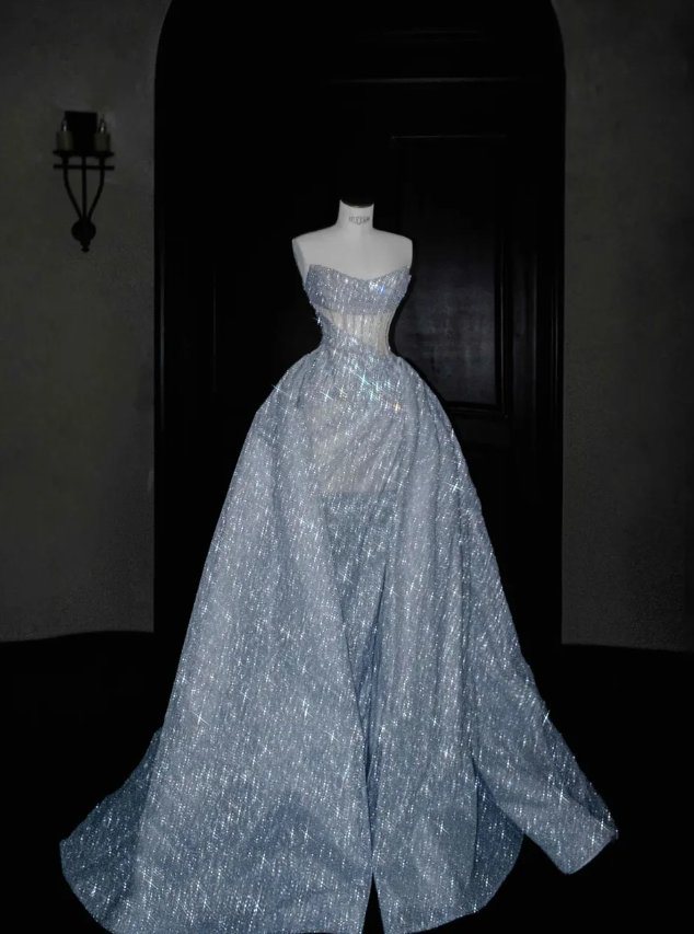 Stunning A Line Strapless Corset Silver Sequin Prom Dress Graduation Prom Dress DP1998