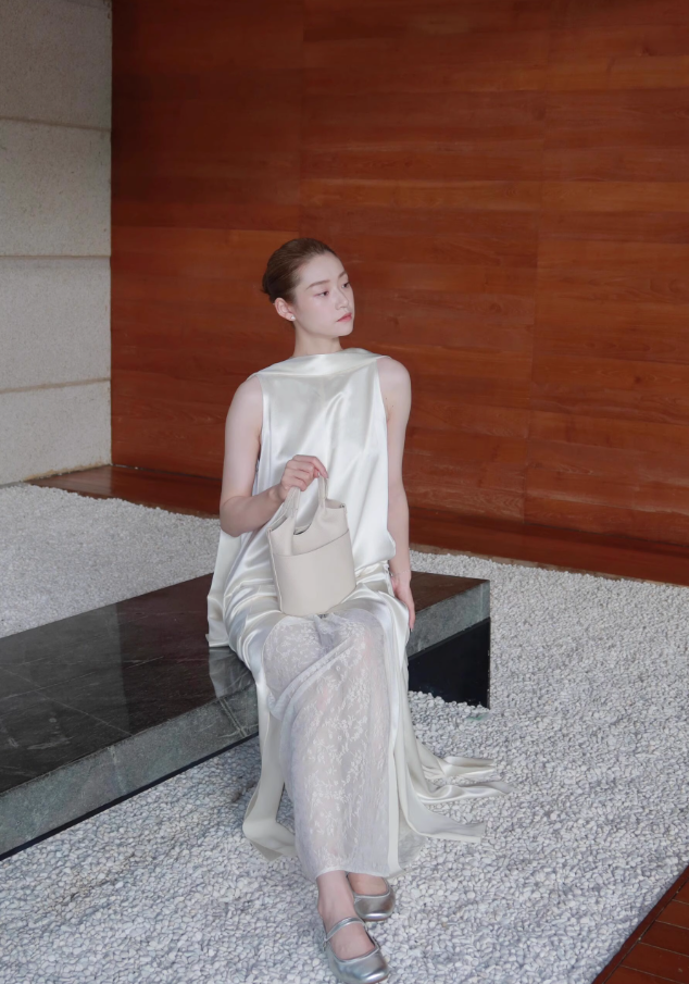 Stunning Flowy White A Line Satin Prom Dress Wedding Guest Dress DP4489