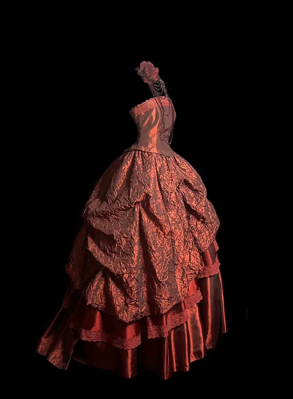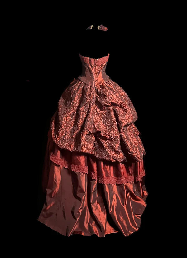 Vintage Ball Gown Strapless Burgundy Floral Long Prom Dress Party Dress Graduation Dresses Sweet 16 Dress DP4145