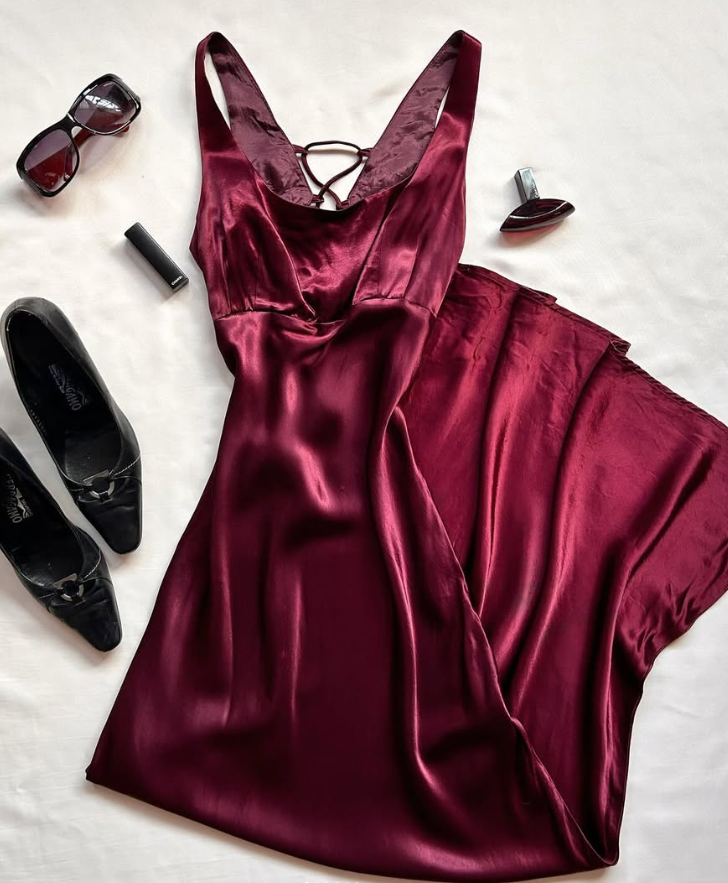 Vintage Mermaid Straps Burgundy Satin Long Prom Dress Evening Dress DP1367