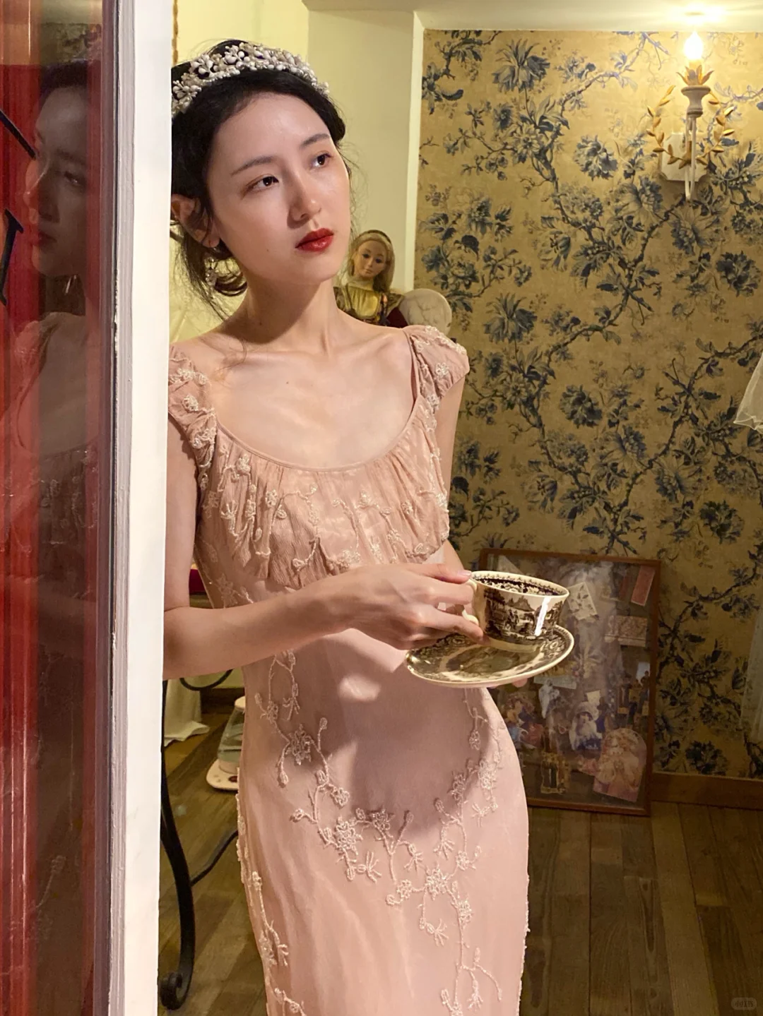 Vintage Pink Sheath Beaded Chiffon Prom Dress Evening Dress DP4005
