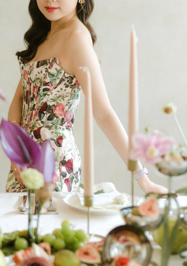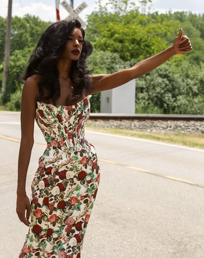Vintage Mermaid Strapless Print Floral Satin Prom Dress Outfits DP4378